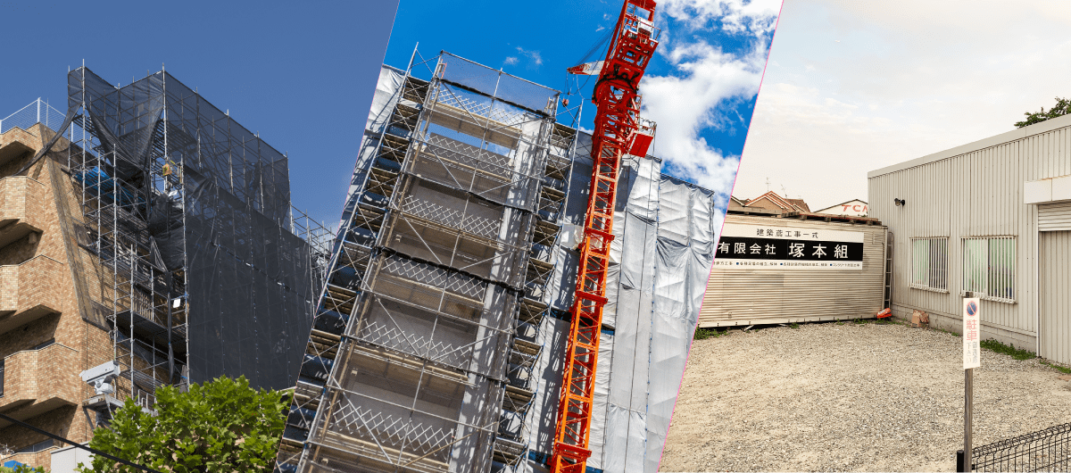 私たち塚本組は鉄骨建方、足場組立・解体、各種建設機械の組立、コンクリート打設工事を手掛けております。